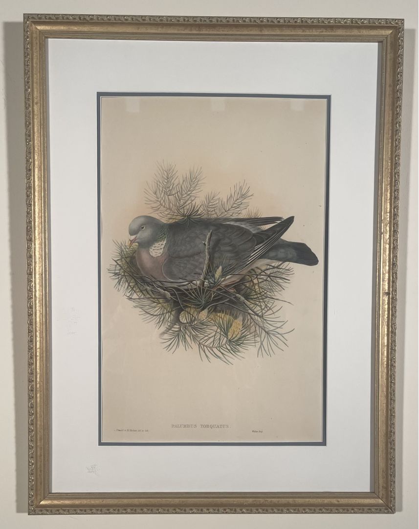 John GOULD AND H. C. RICHTER PALUMBUS TORQUATUS Gould and H. C. Richter, John. PALUMBUS TORQUATUS. Lithograph with hand-coloring, from "The Birds of Great Britain," 1862-1873. 21 1/2 x 14 1/2 inches, 545 x 368 mm. In very good condition and attractively framed. Inventory # 10423 Price: $300.00 Add to Cart