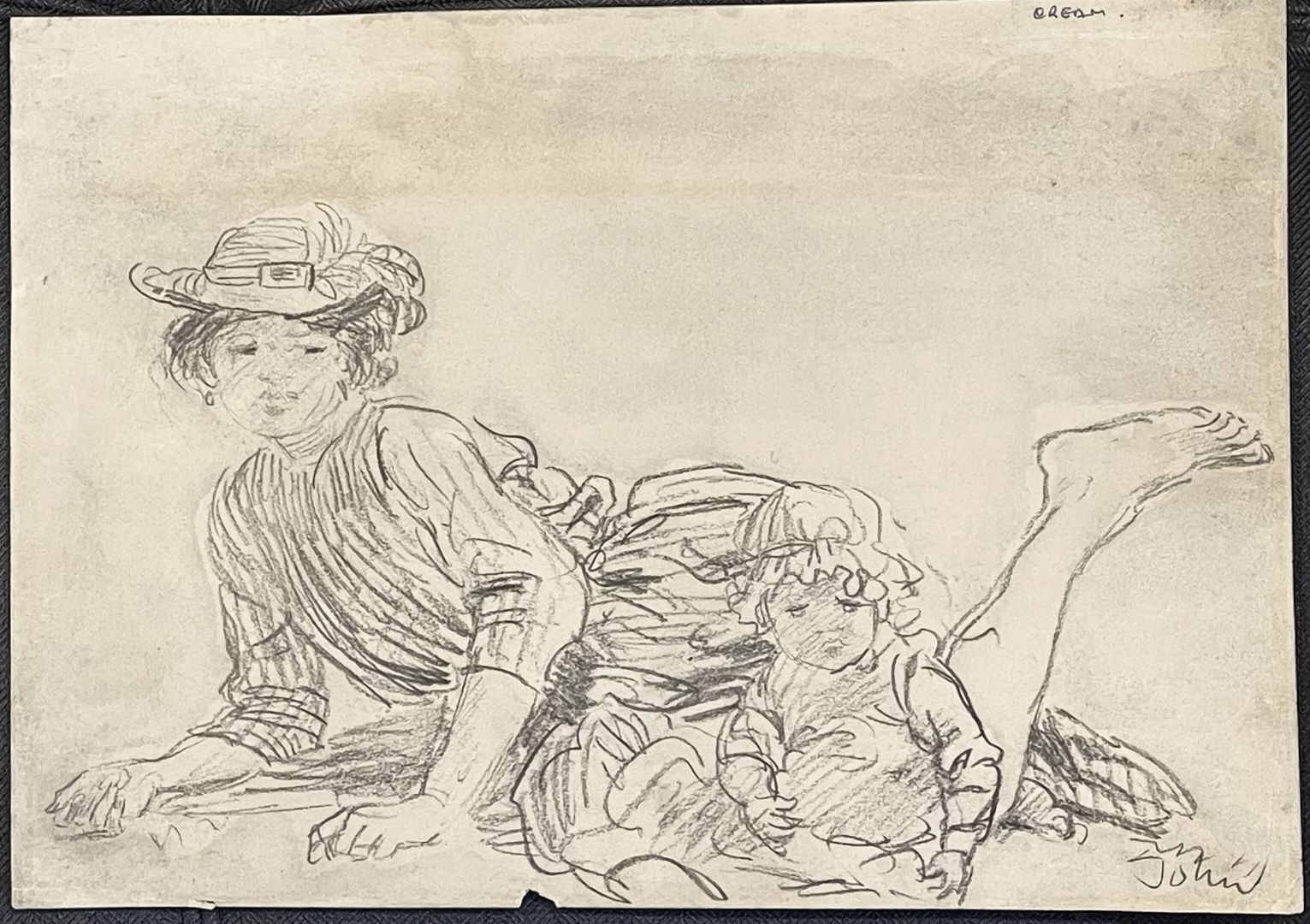 John, Augustus (British, 1878-1961) IDA WITH CHILD. Pencil on paper, not dated, but after 1901 and before 1907. Signed lower right. 7 3/4 x 13 1/4 inches (sheet), framed to 16 1/2 x 21 1/2 inches.
