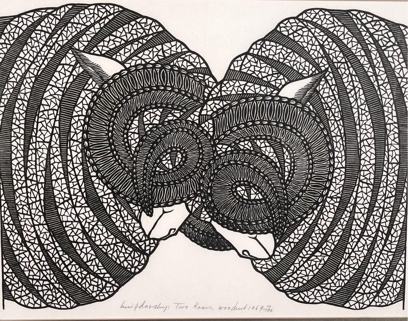 Hnizdovsky, Jacques. TWO RAMS. Tahir . Woodcut., 1969. Edition of 100. Signed, Titled, dated and numbered 17/100 all in pencil. 18 x 23 3/4 inches. In excellent condition.