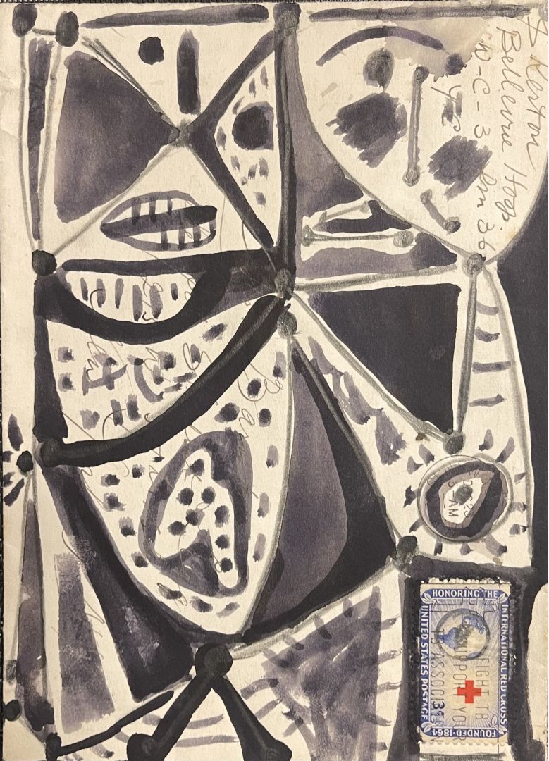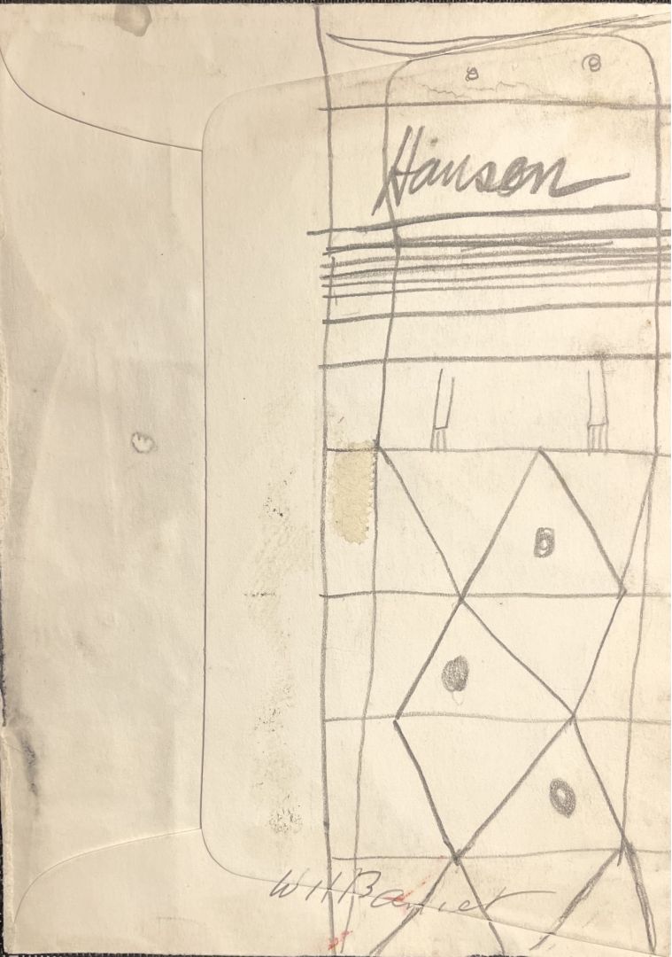 Barnet, Will. (American1911-2012) UNTITLED - INDIAN SPACE DRAWING. Pencil and ink on paper envelope, circa 1952. Signed in pencil, verso. 7 1/4 x 5 1/4 inches. There is a rough sketch for another drawing on the verso. In excellent condition.